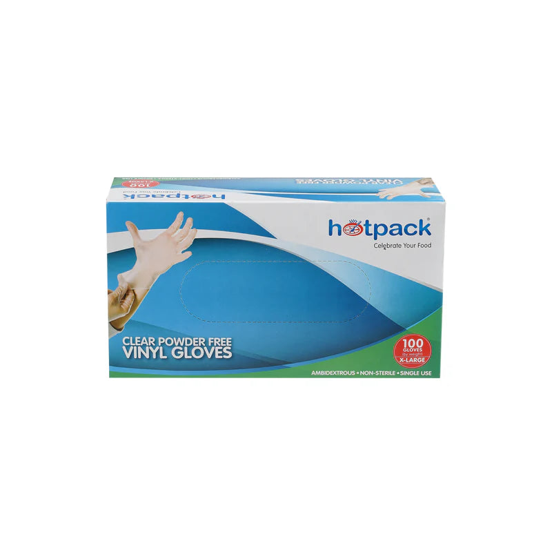 Hotpack Powder free vinyl gloves are an excellent choice for personal hygiene, food service, salon, housekeeping, janitorial, and other light industrial applications These gloves are a great way to keep your staff in compliance with health code regulations at all times. These gloves are versatile and convenient in any setting!