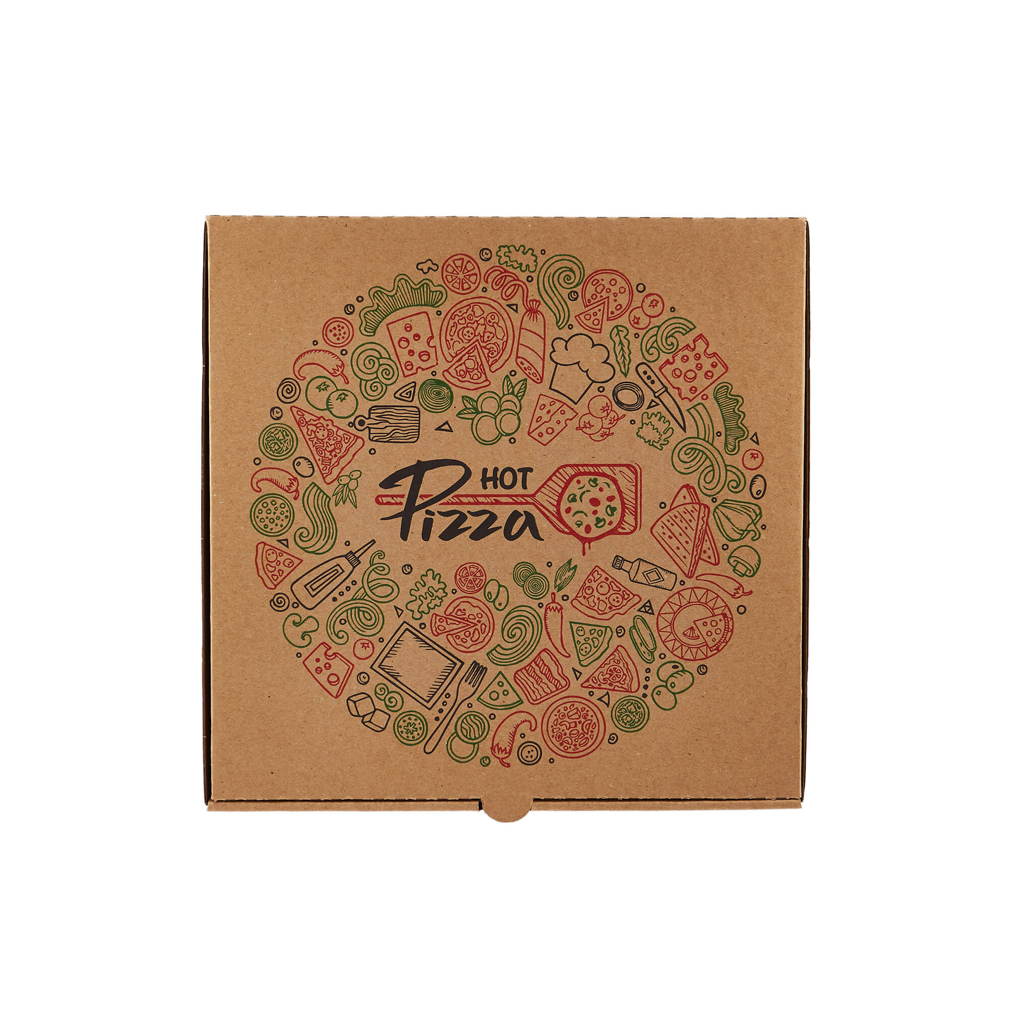 The pizza box is a folding box made of cardboard in which hot pizzas are stored for takeaway, Our pizza box design is tried-and-tested in keeping pizza pies warm and dry during delivery, providing the function of conventional pizza boxes and your custom design.
